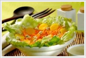 Em uma saladeira, disponha a alface, a mandioquinha e a cenoura, e por cima, o gorgonzola.