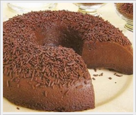 Bata todos os ingredientes no liquidificador (menos o granulado) e coloque em uma fôrma de buraco no meio de 20cm de diâmetro untada. Leve ao forno médio, preaquecido, em banho-maria, por 35 minutos. Espere amornar e leve à geladeira por 3 horas, desenforme, polvilhe o granulado, decore com cerejas e sirva.