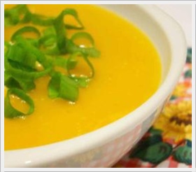 Em uma panela, leve ao fogo alto a cebola e a margarina até dourar. Junte a farinha de trigo, misture e cozinhe até dissolver. Adicione a pimenta, o leite e o caldo de carne, mexendo até ferver. Abaixe o fogo, acrescente os legumes e tempere com sal. Quando estiverem macios, bata no liquidificador e sirva polvilhada com cebolinha fina picada.